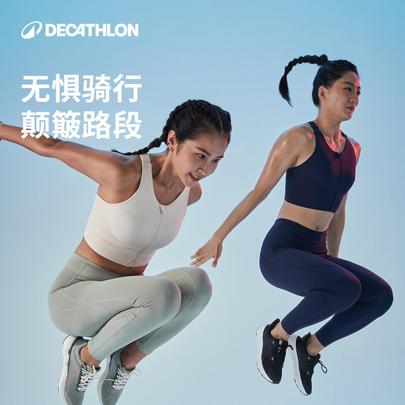 迪卡侬低强度支撑运动内衣女无缝长款 速干透气骑行内搭外穿SAS1