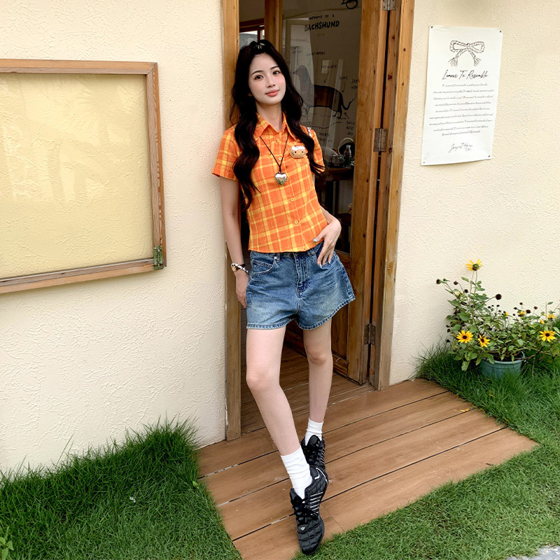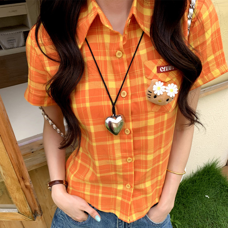 多巴胺显瘦气质短款 女夏季 上衣 子polo领衬衫 橘子树在哪儿学院风格