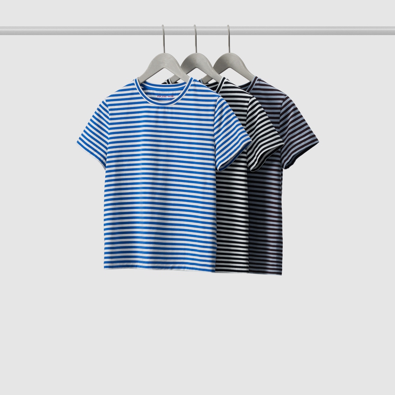新品 女士条纹棉弹针织布合体短袖 素然ZUCZUG 24夏季 T恤 4M36