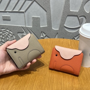 稻草人钱包女士新款 牛皮简约钱夹零钱包女生卡包 真皮小众钱夹女式