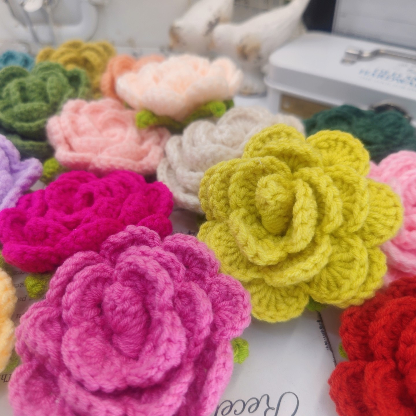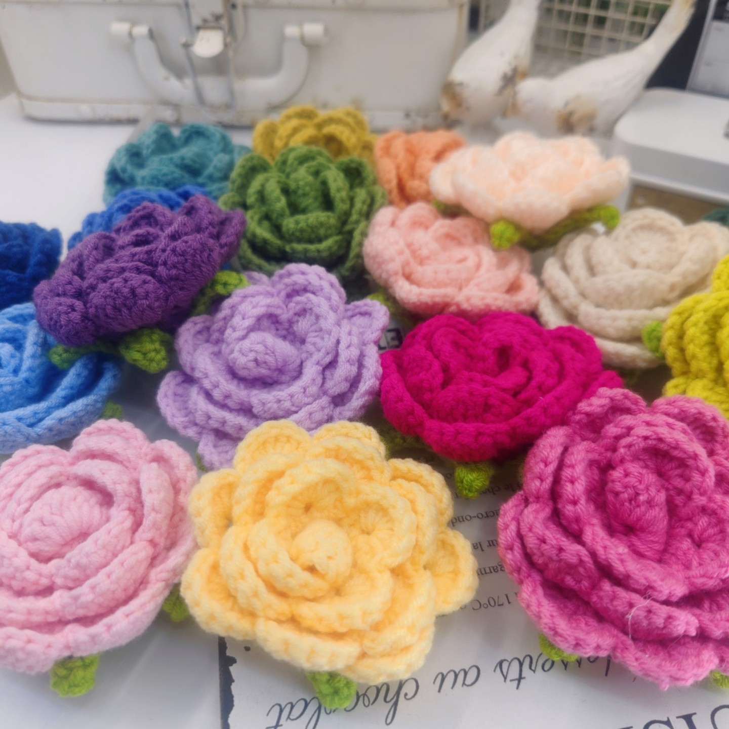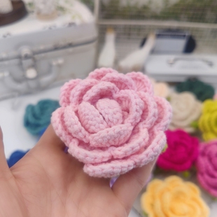 玫瑰DIY手钩花毛线编织花朵配饰服装 饰品材料手工花 辅料毛衣装