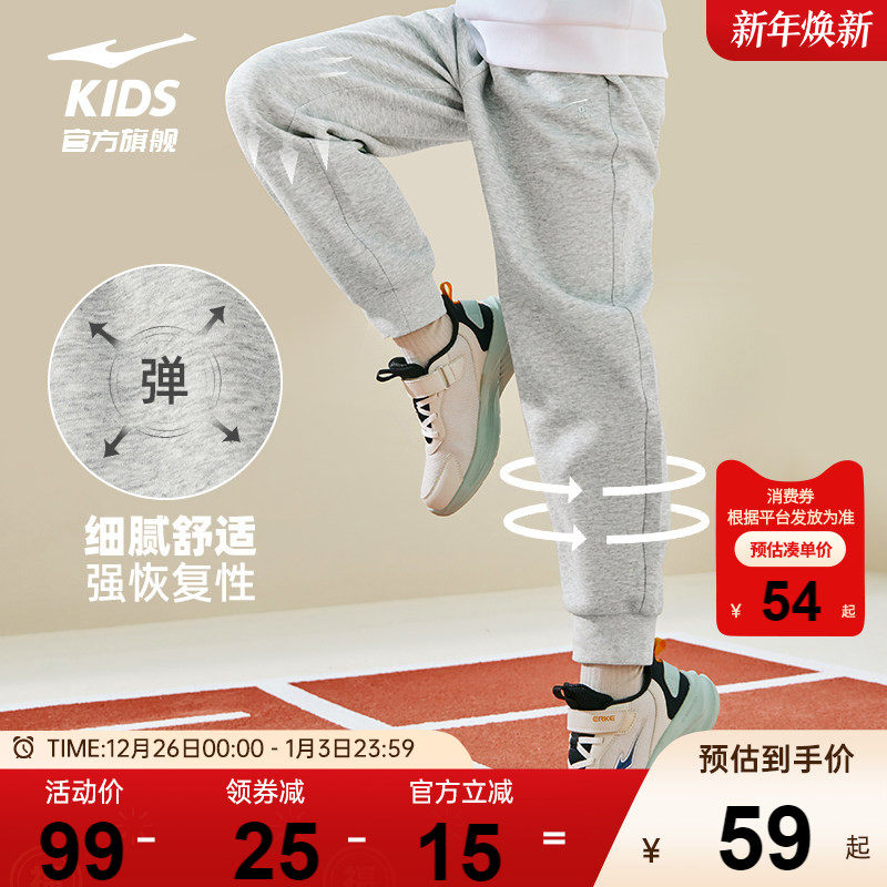 男童青少年加绒裤 鸿星尔克童装 中大童卫裤 子秋冬长裤 子 儿童运动裤