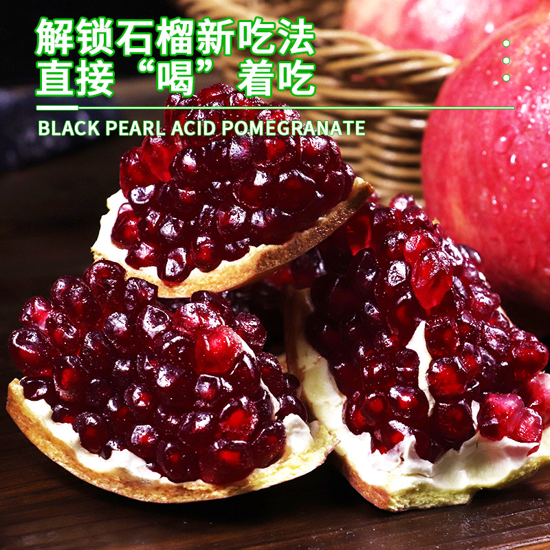 黑珍珠酸石榴新鲜水果当季 正宗黑籽酸黑籽软籽石榴红宝石石榴大果