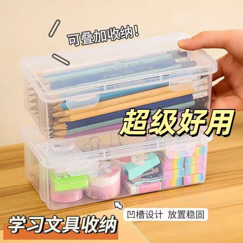 铅笔收纳盒大容量透明文具盒收纳笔筒装 彩铅儿童蜡笔绘桌面收纳盒