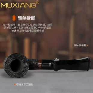 一口香烟斗 实木烟袋锅传统老式 石楠木小烟斗男士 手工便携烟斗弯式