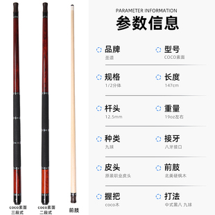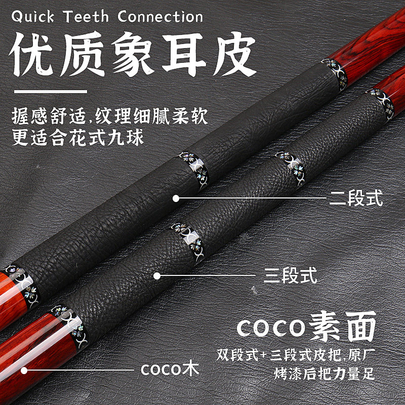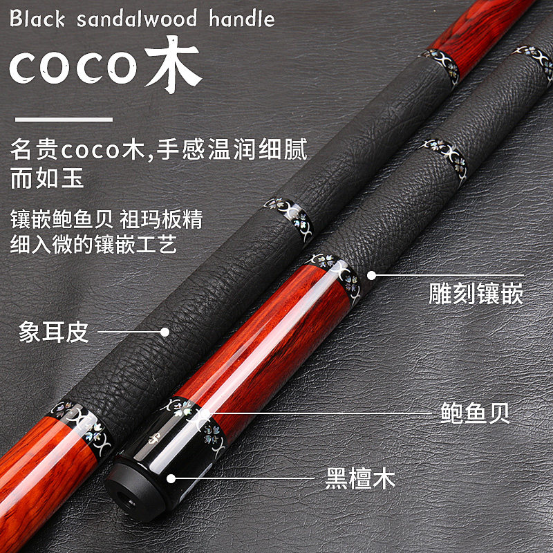 圣道纯手工实木桌球杆COCO握把九球杆中式 黑八职业台球杆追分必备