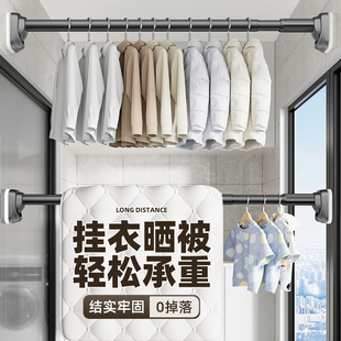 晾衣杆伸缩免打孔阳台卫生间浴室晾衣架窗帘杆可墙上晾晒挂衣架