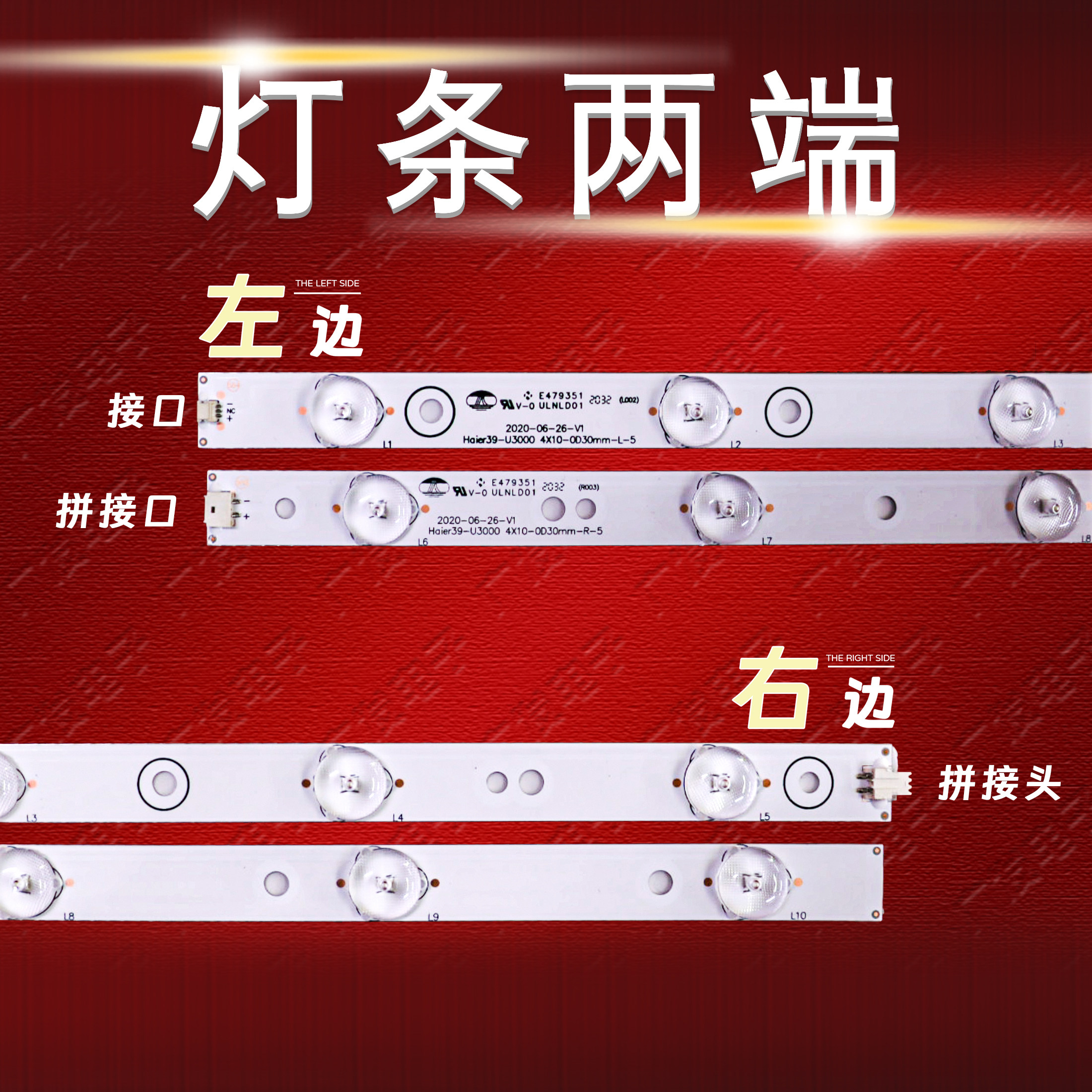 U3000 4X10 0D30mm 适用海尔LE39A390灯条LD39U3100灯条39