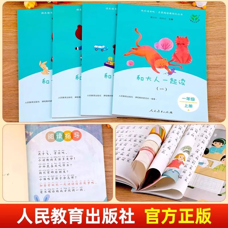 人教版 小学生1年级阅读课外书必读老师推荐 和大人一起读一年级上册快乐读书吧正版 社曹文轩陈先云注音版 全4册人民教育出版 2025新版