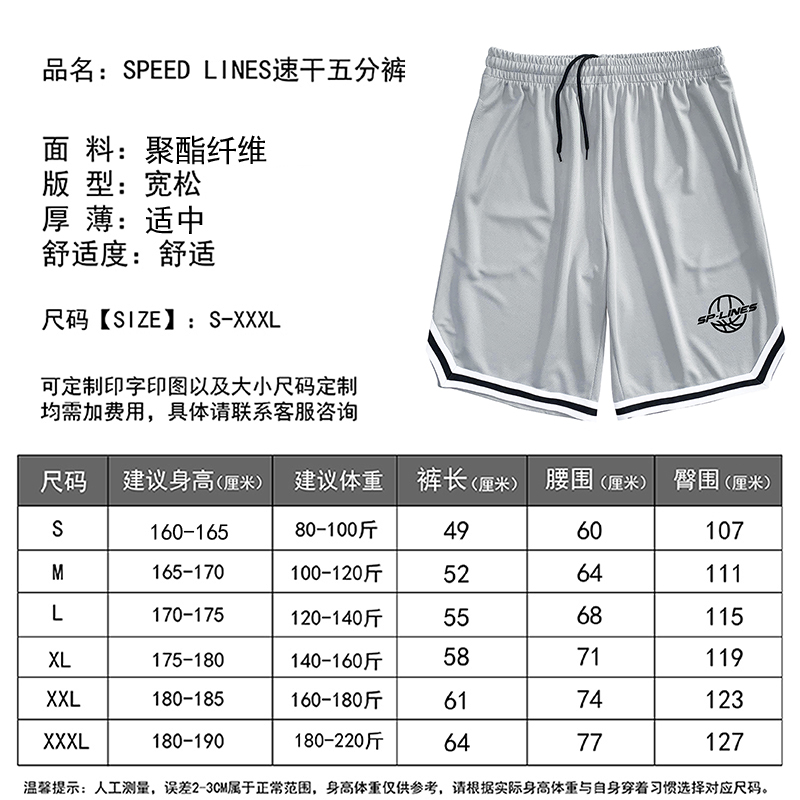 休闲篮球健身跑步裤 五分裤 中裤 舒适透气排汗松紧运动裤 男速干短裤