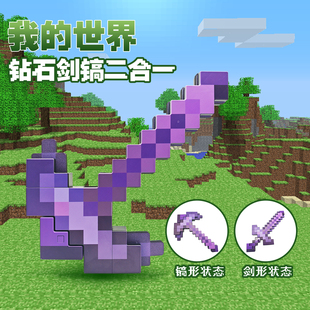 我 备mc钻石剑镐子 世界弓箭游戏周边宝剑手办模型解压玩具武器装