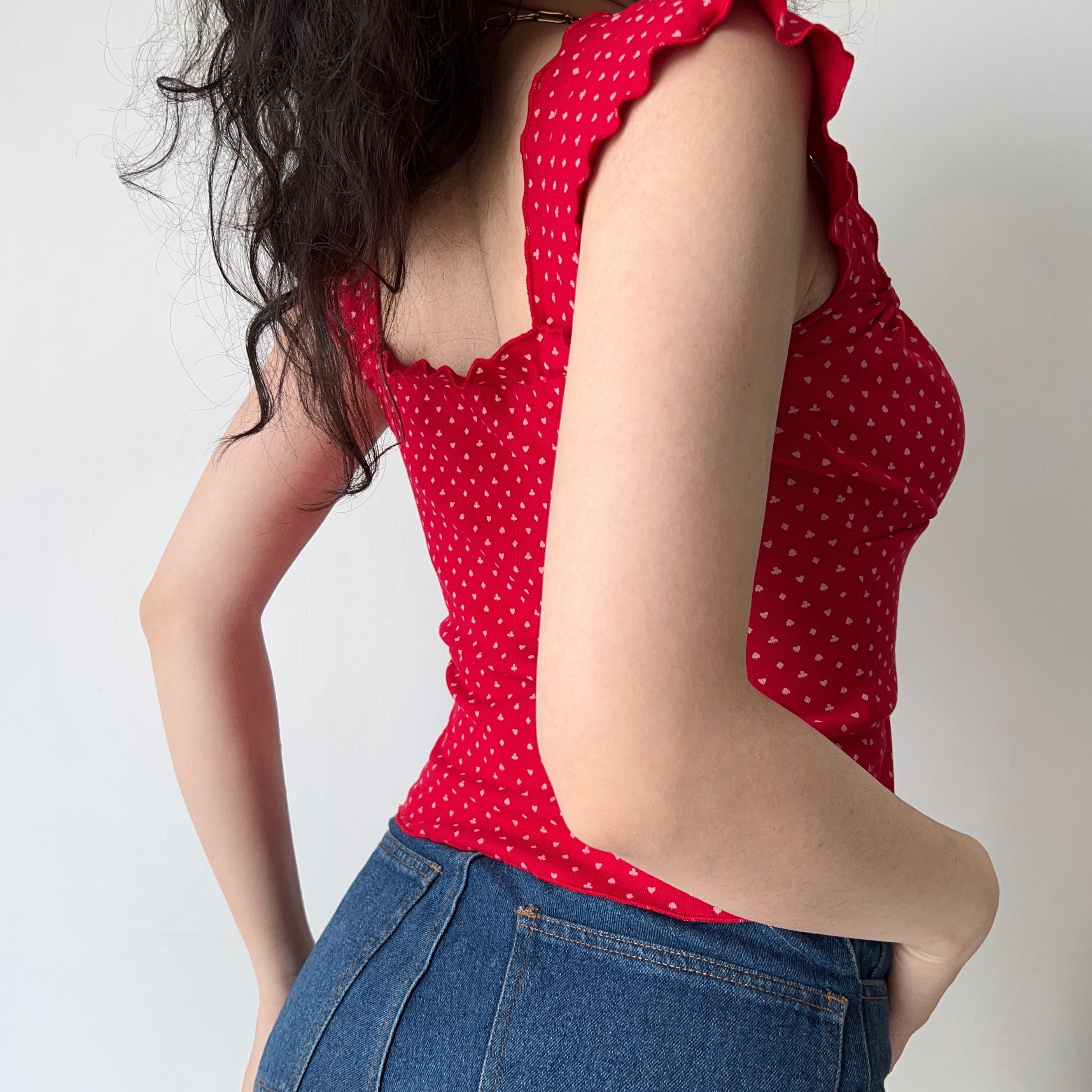 短款 自制欧美风性感一字肩系带T恤女木耳边修身 上衣 Girl