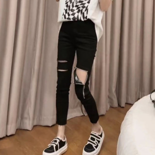 女胖mm显瘦烟管裤 大码 高腰弹力破洞牛仔裤 春秋2026新款 子女 女装
