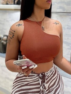 Umbilical Top Oblique Solid 露脐斜肩纯色上衣女 Shoulder Sexy