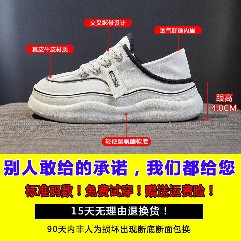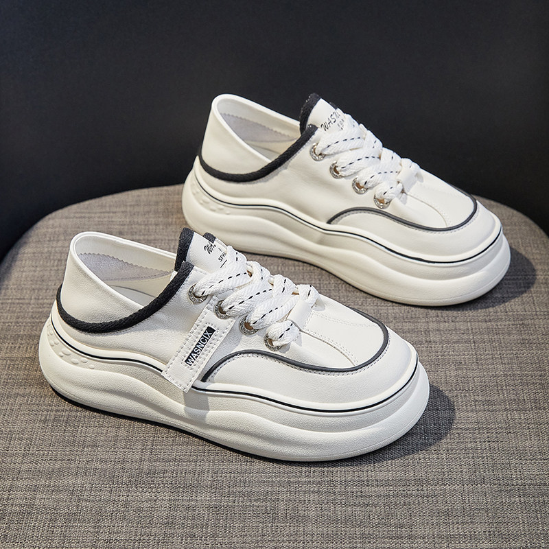 百搭松糕厚底大头丑萌休闲运动板鞋 真皮小白鞋 韩版 新款 女2026春季