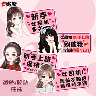 女司机实习期新手上路开车磁性驾驶汽车创意搞笑可爱提示标志贴纸