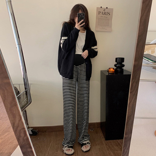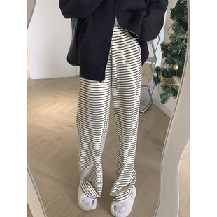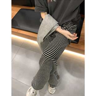 孕期不勒肚子外穿打底裤 加绒加厚2025新款 子秋冬季 孕妇条纹阔腿裤