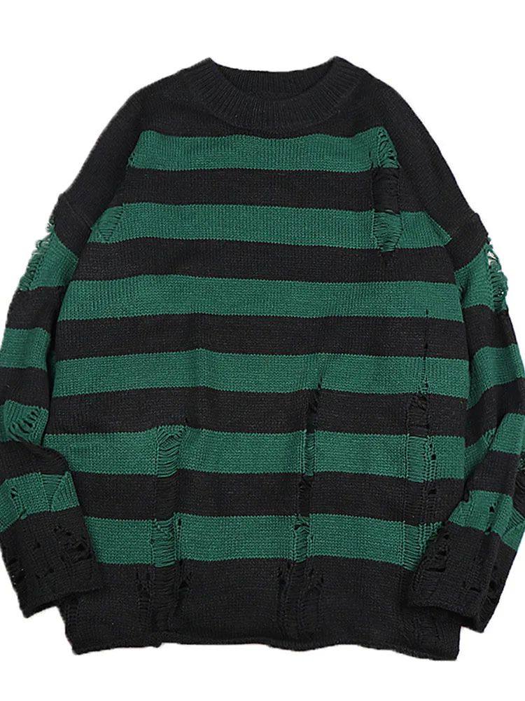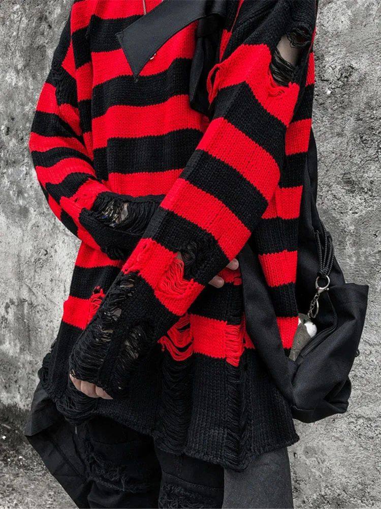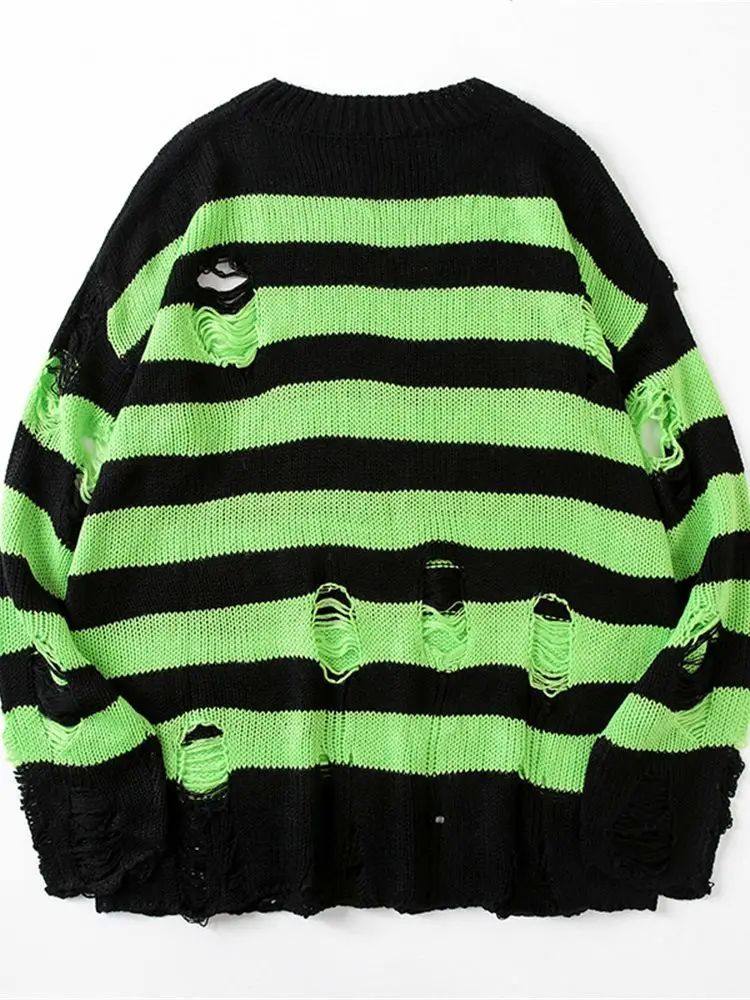 Punk Unisex Sweater Striped Hollow Women Winter Out Sweaters