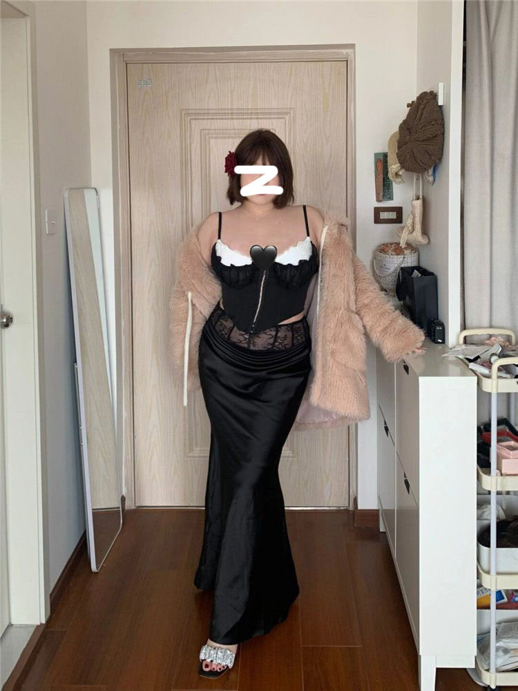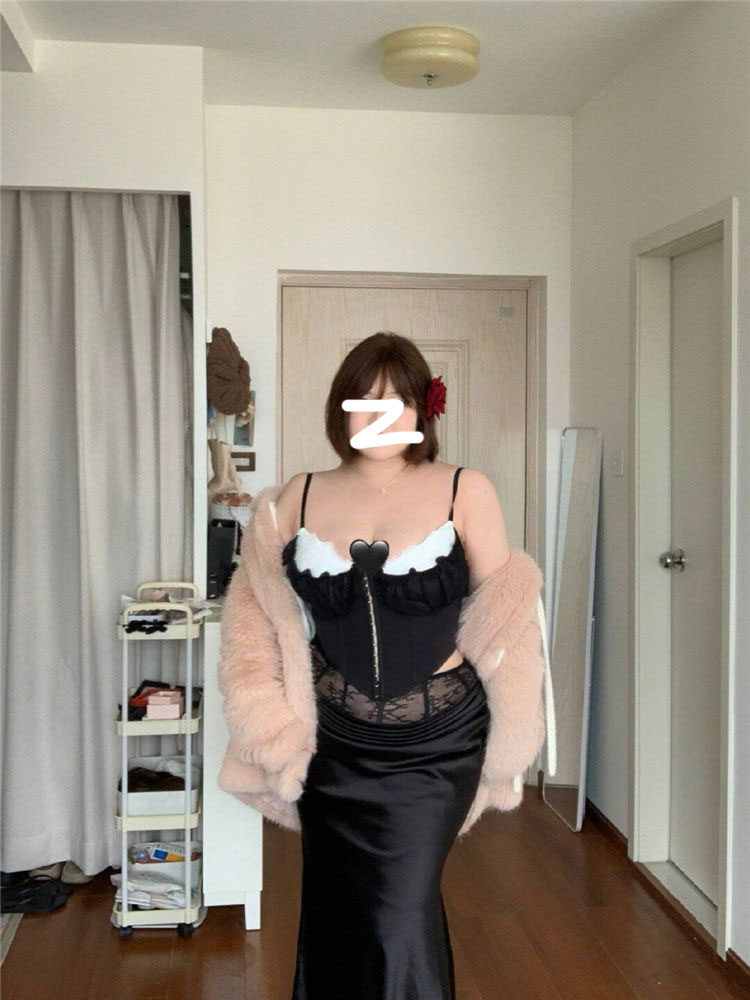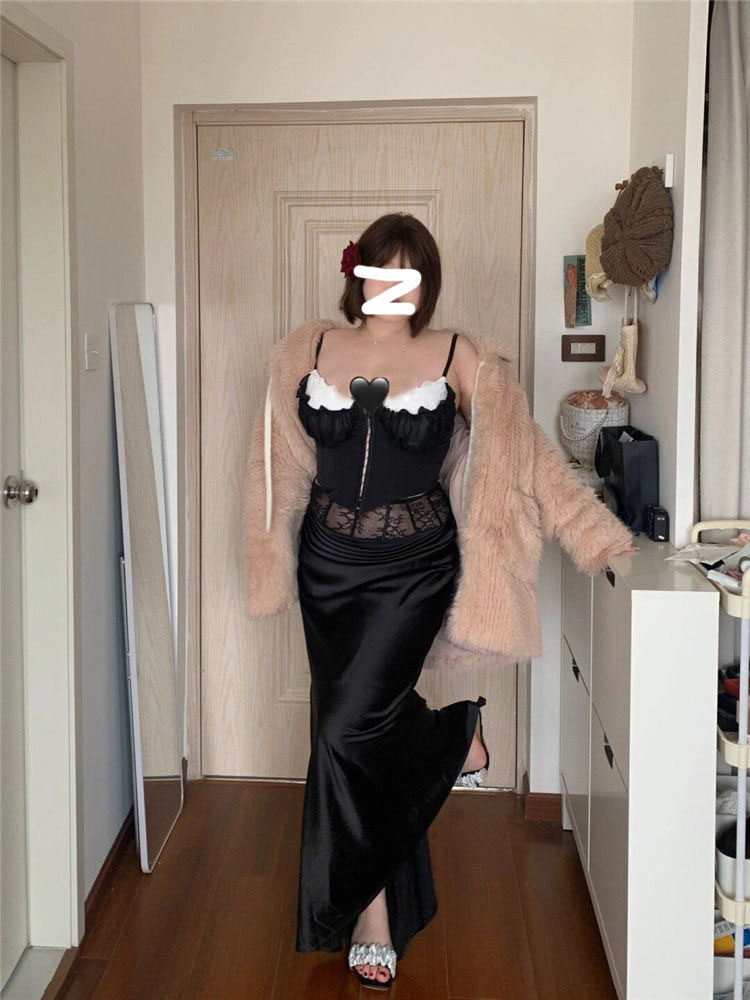 女2025秋冬毛领修身 套装 显瘦吊带连衣裙 毛茸茸爱心时尚 安妮不火