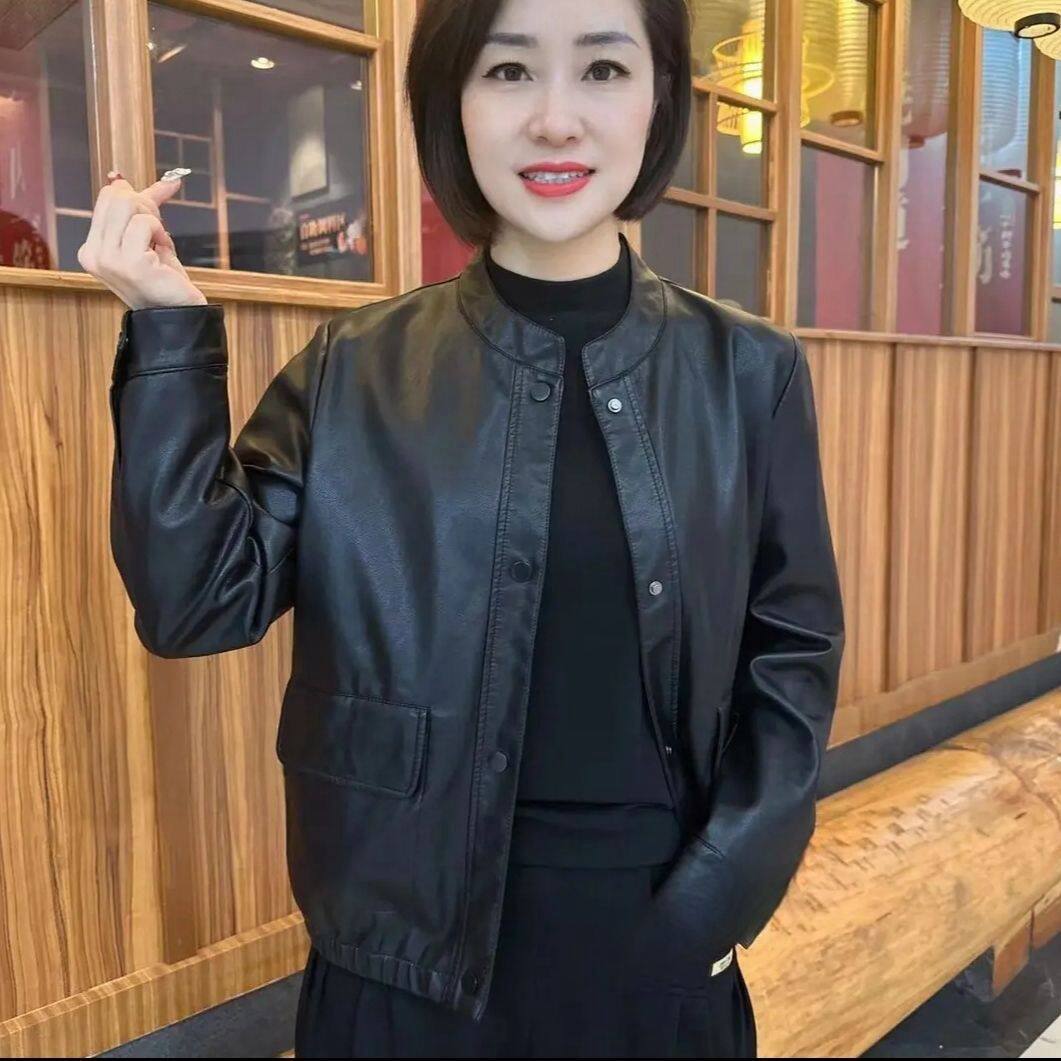 海宁皮衣女短款 皮夹克气质休闲立领圆领皮机车小外套 2025春秋新款