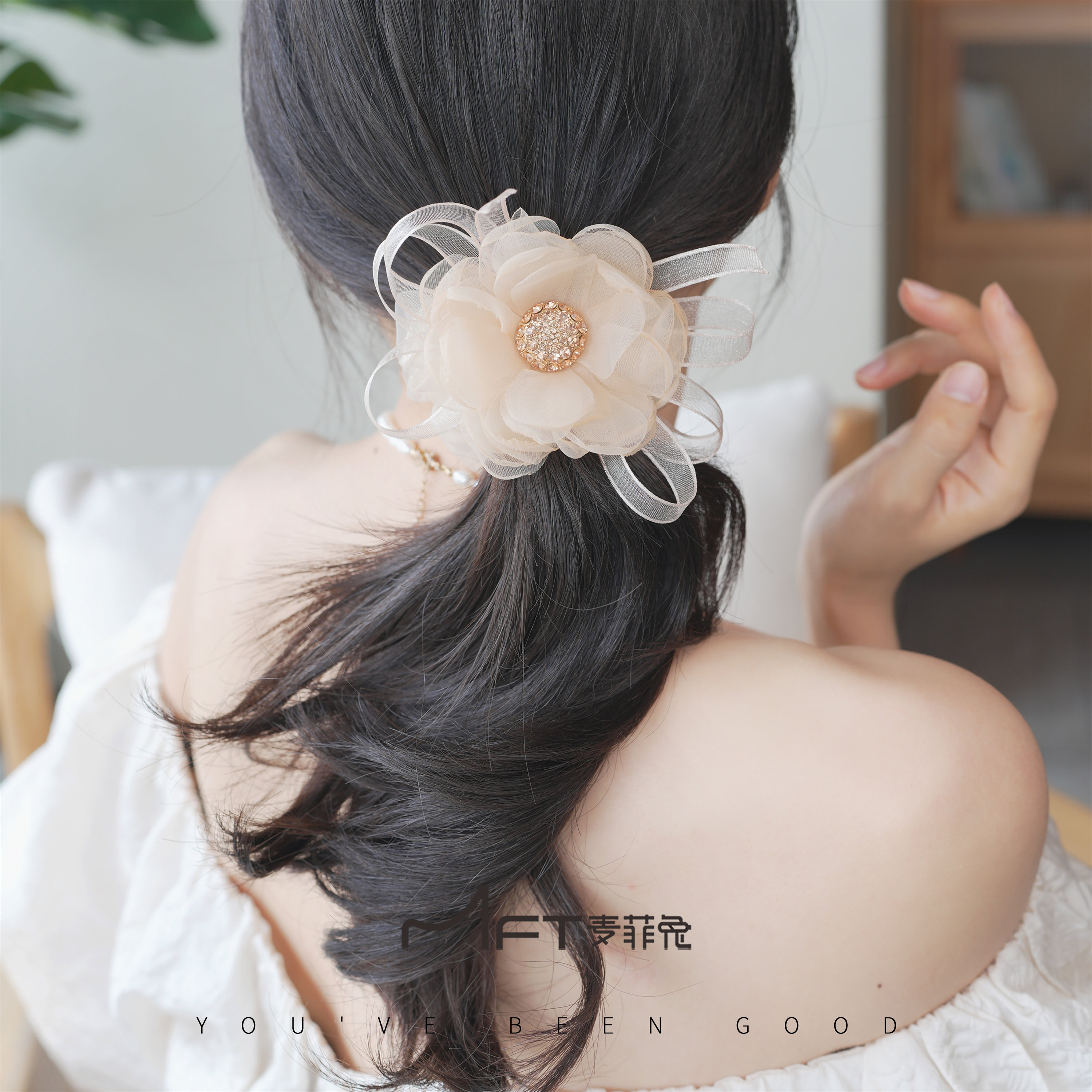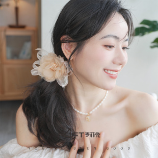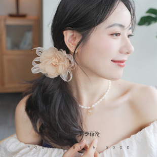 兰壹壹海棠发圈2024新款 早春纯欲欧根纱花朵超仙甜美少女发饰