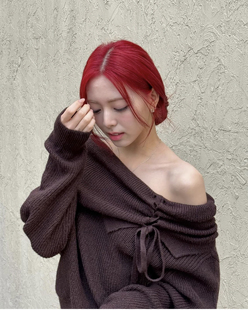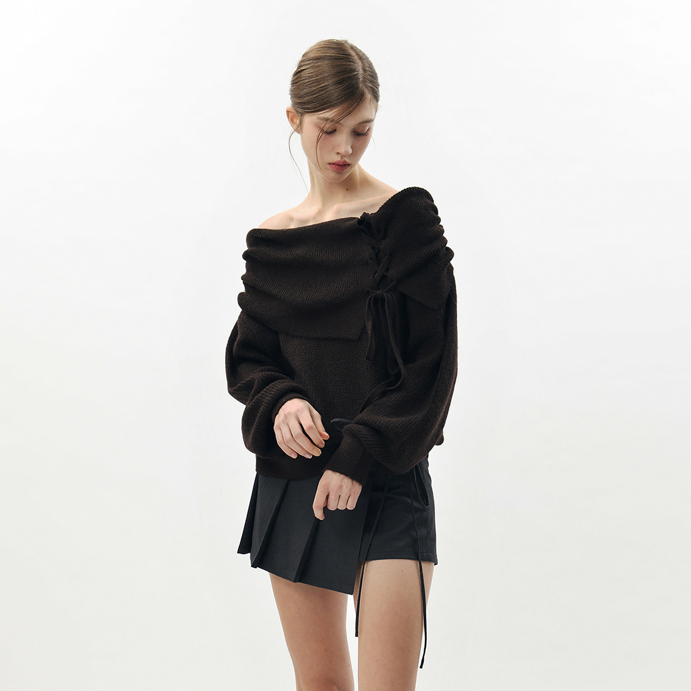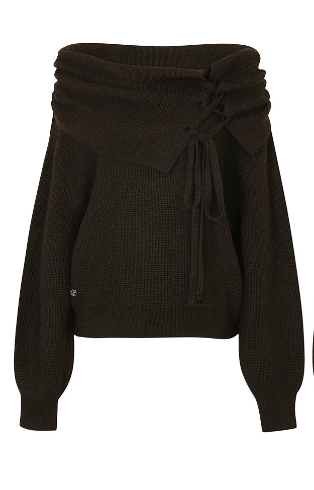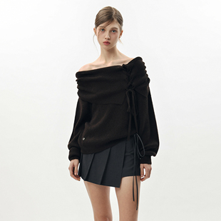 PLEASURE露肩绑带灯笼袖 Sana张元 PAIN 针织毛衣上衣女 英同款
