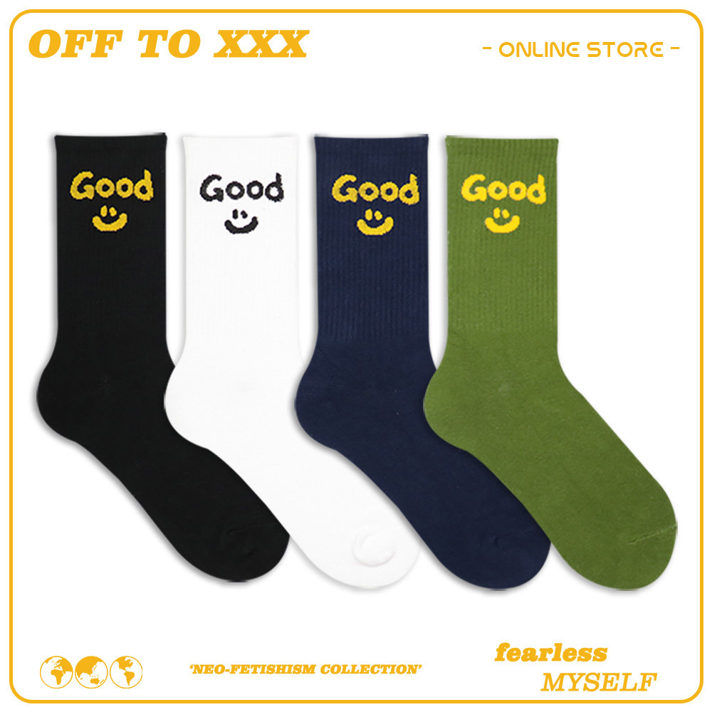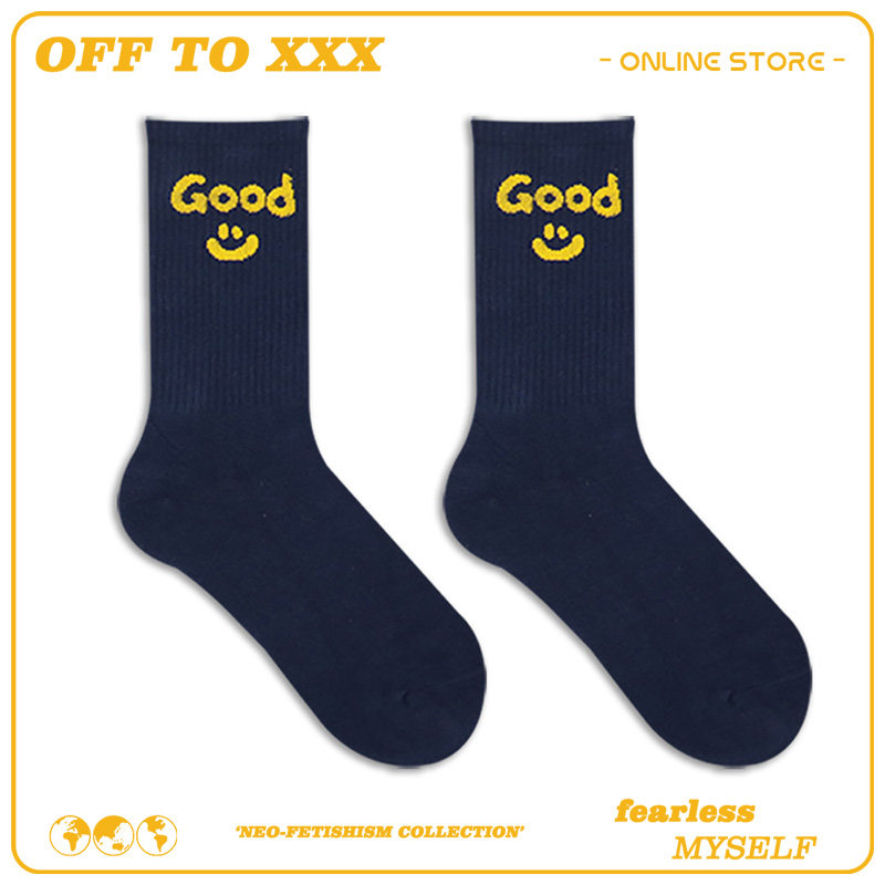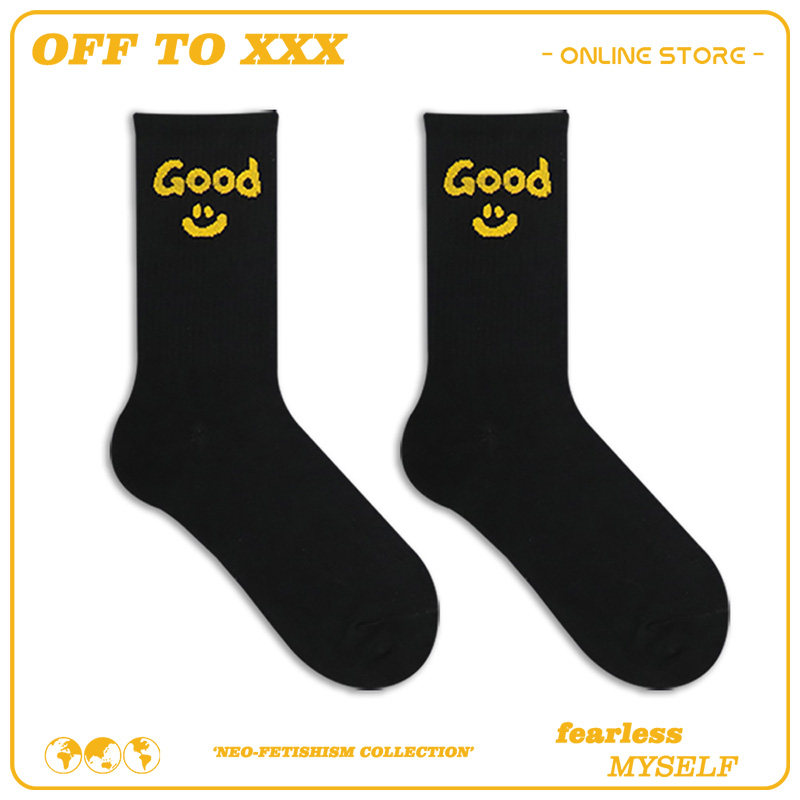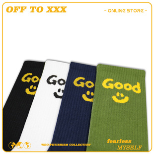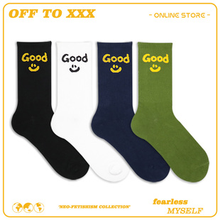 Drew美式 潮牌笑脸字母袜子欧美小众街头潮流运动中筒袜男女纯棉