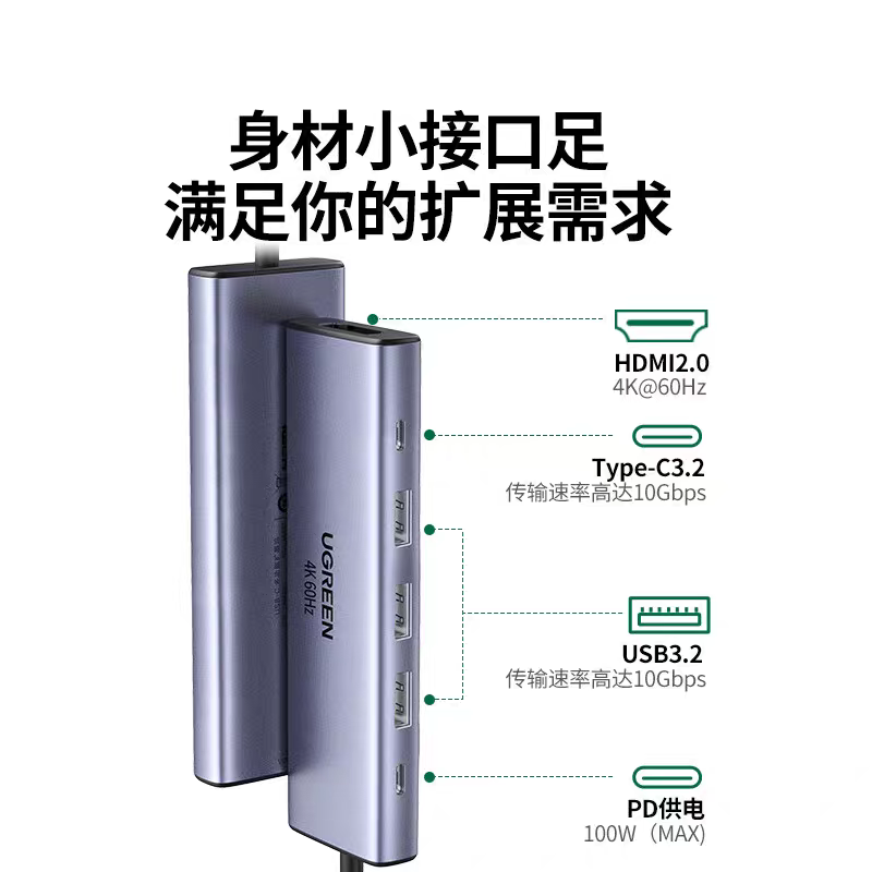 c3.2pd六合一45031 3USB3.2 Ugreen绿联CM511Type C拓展坞转hdmi