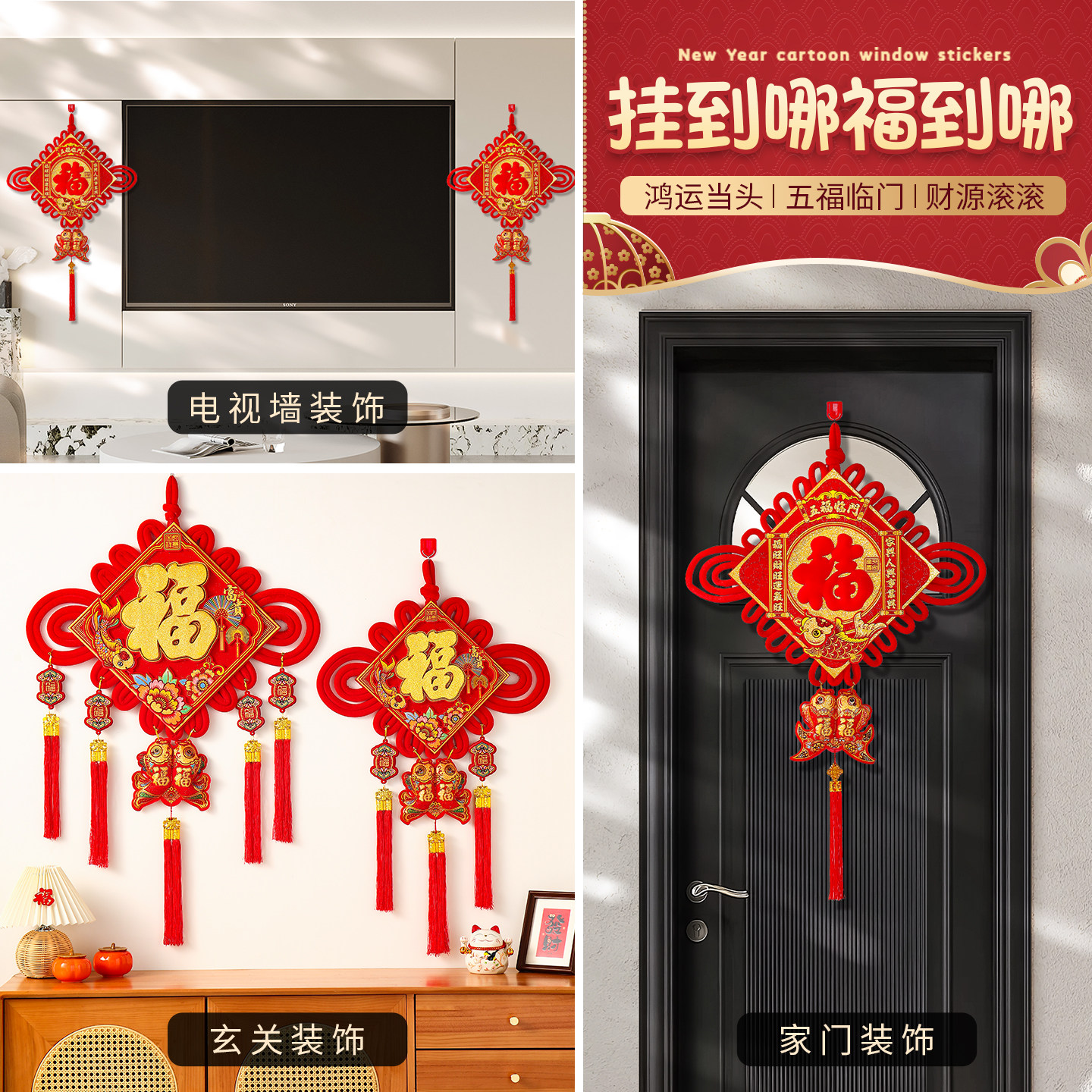 中国结福字挂件装 饰客厅大号红色高档背景墙玄关入户门挂2026新款