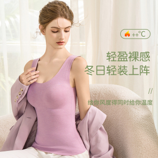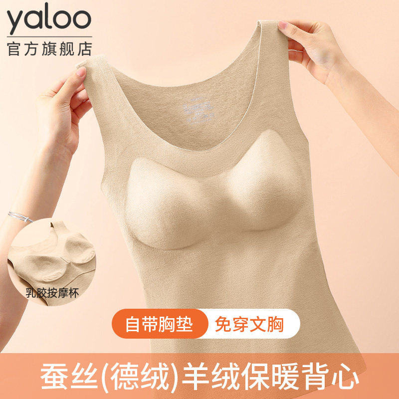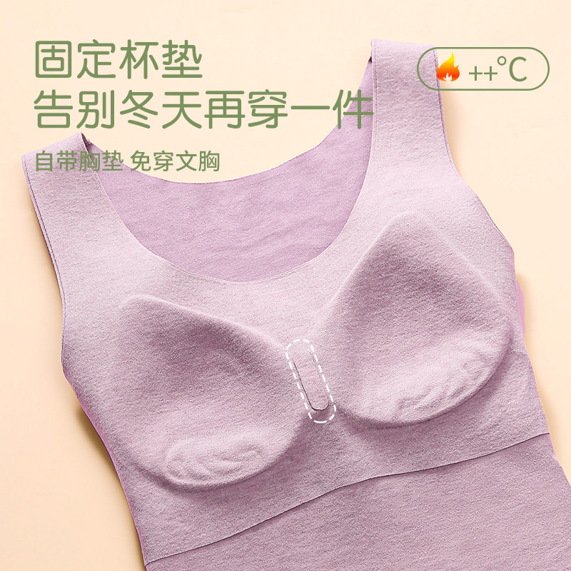 雅鹿德绒保暖背心女带胸垫固定杯加绒内衣女羊绒蚕丝内搭秋冬上衣