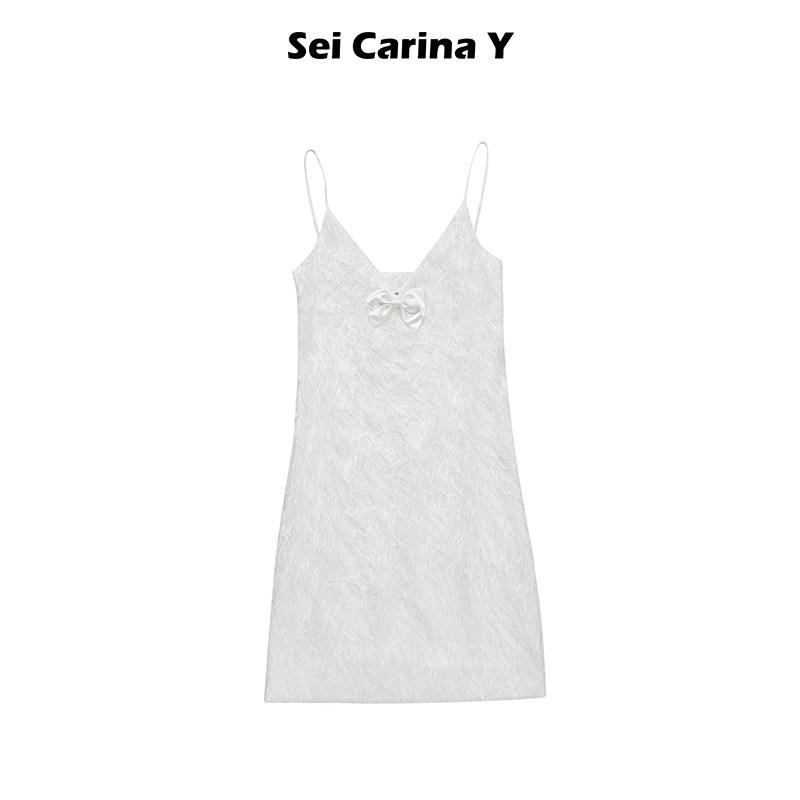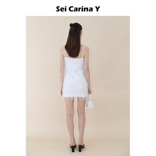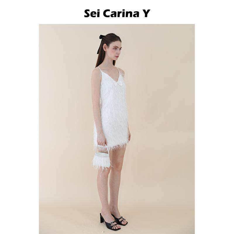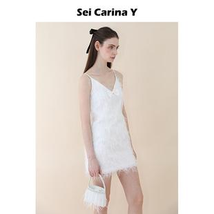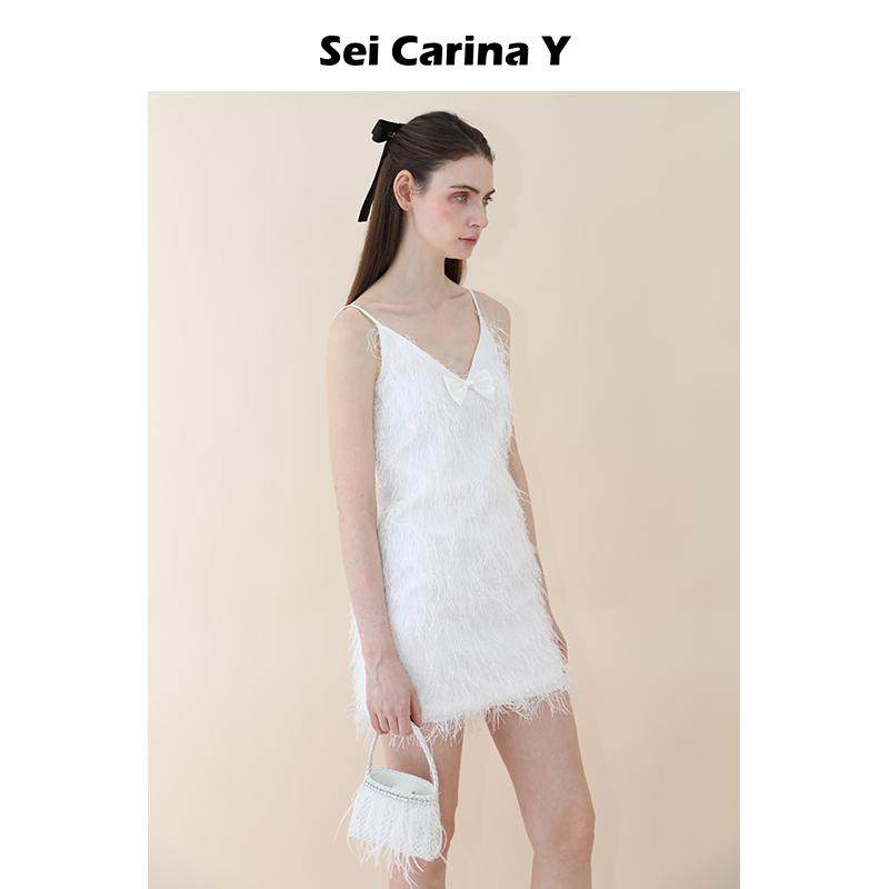 Y流苏缎面吊带连衣裙V领高级感性感修身 Carina Sei 裙子女 5折