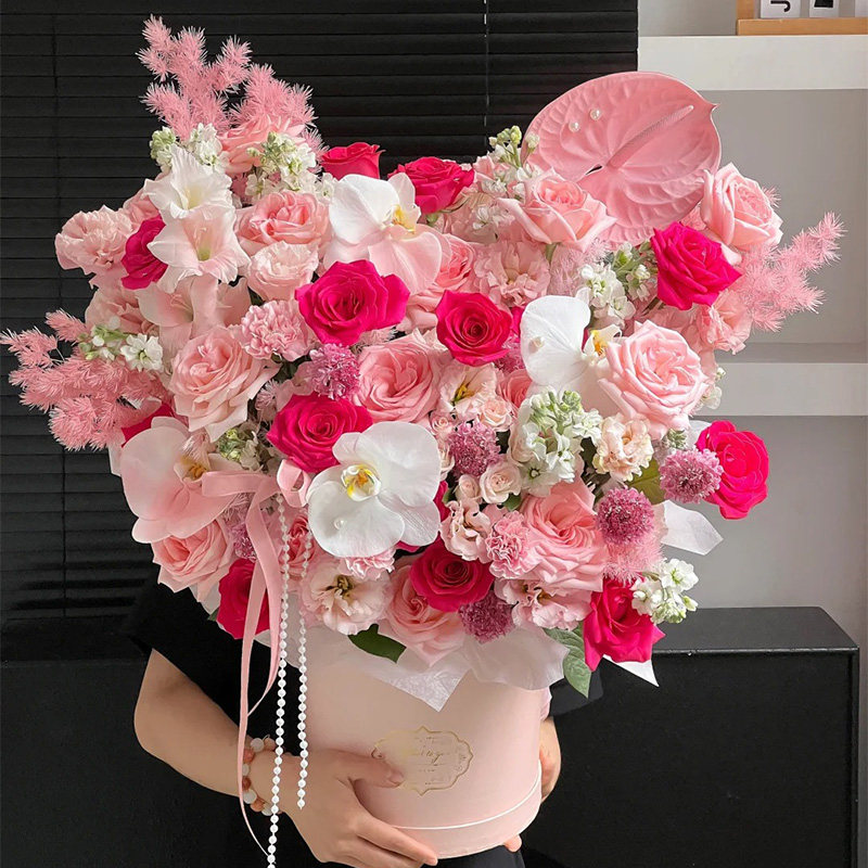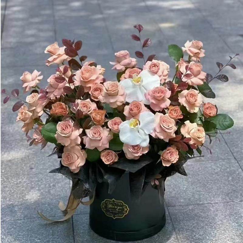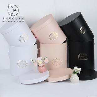 套三鲜花抱抱桶空桶花束包装 盒白色黑色粉色银色礼盒花盒插花盒