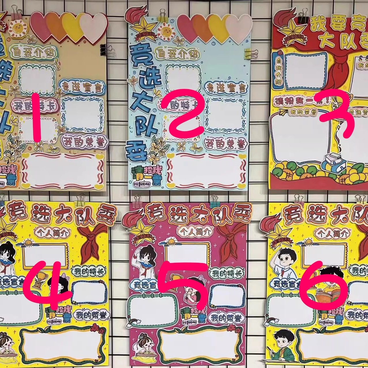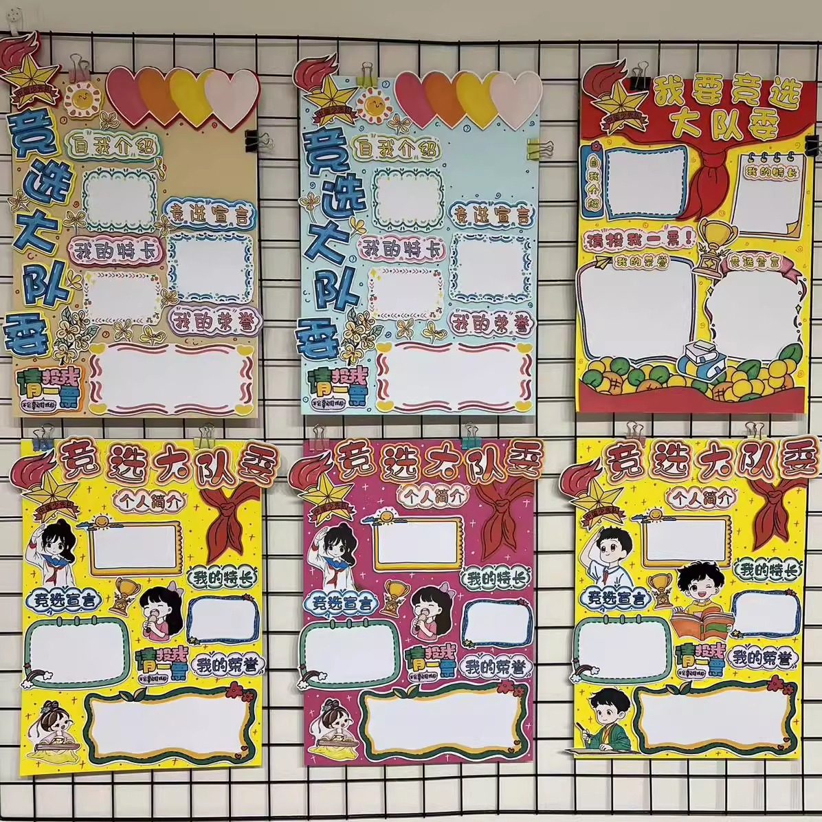 竞选大队委手绘立体海报适合A4 A3可彩色打印剪纸
