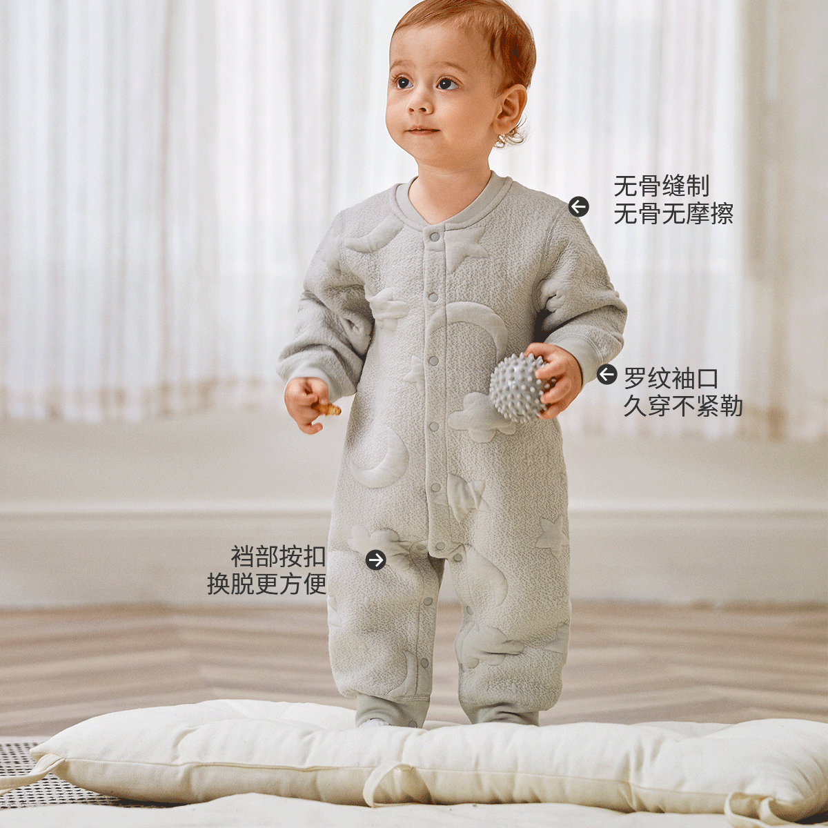 aqpa爱帕婴儿衣服秋冬季 保暖夹丝夹棉宝宝连体衣哈衣外出服可爱萌