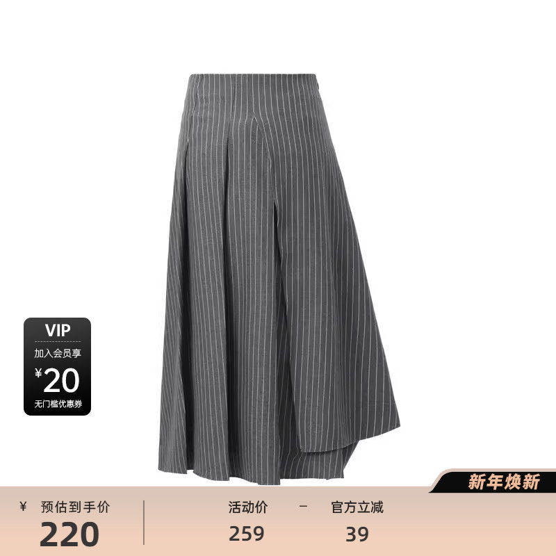 sdeer圣迪奥女装 复古高腰条纹不规则伞裙S24181105 秋法式