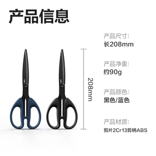 剪刀办公家用锋利不粘胶耐磨不锈钢黑刃剪刀儿童剪纸美工大号学生专用手工剪子升级加长多功能小号拆快递剪刀