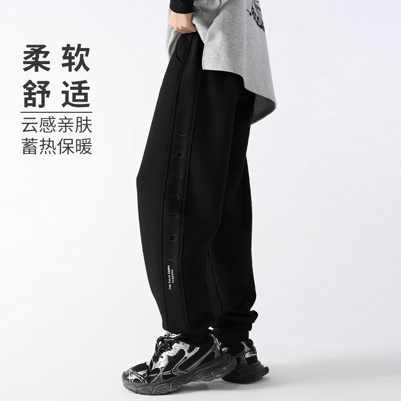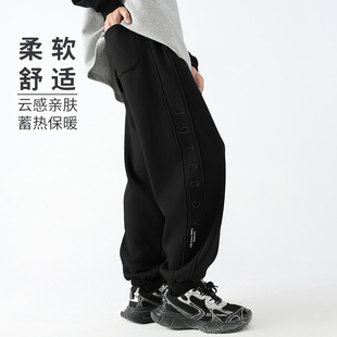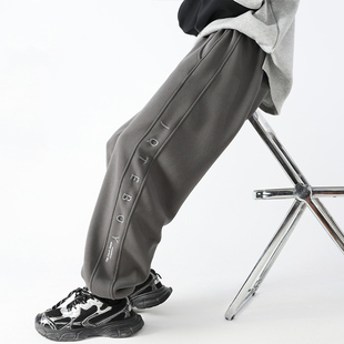 显瘦垂感休闲裤 格雷系加绒黑灰色阔腿慵懒风格 大码 子女秋冬季 子裤