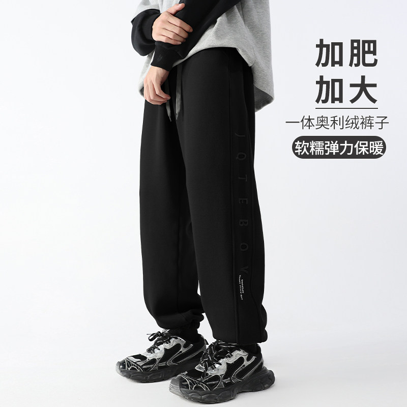 美式 直筒加绒裤 蝴蝶贴布阔腿休闲裤 胖mm显瘦卫裤 子 女秋冬新款 大码