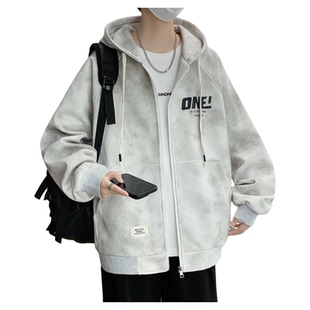 阿于呆秋冬日系假两件水洗连帽牛仔外套男宽松休闲情侣工装 夹克女
