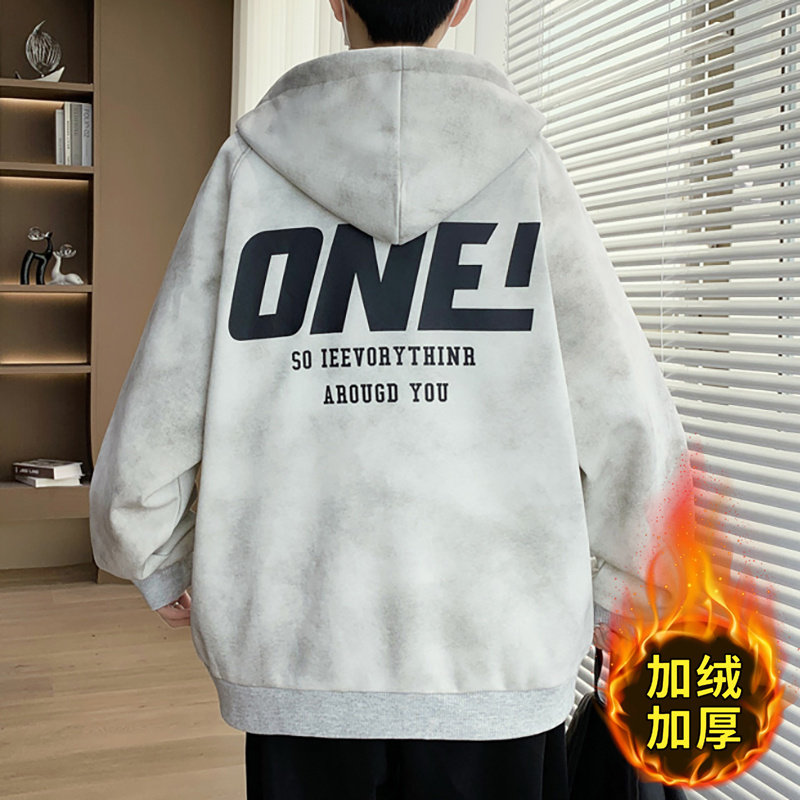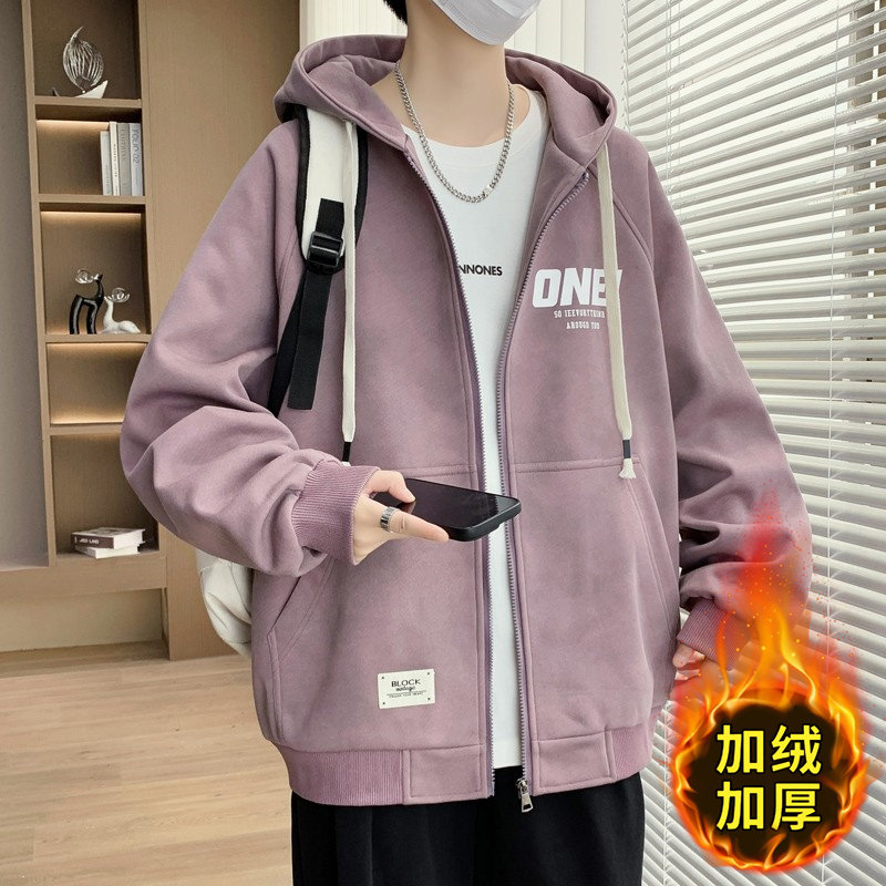 LAMLICKA周深同款 加厚宽松连帽夹克 蓝色保暖羊羔毛棉服外套男冬季