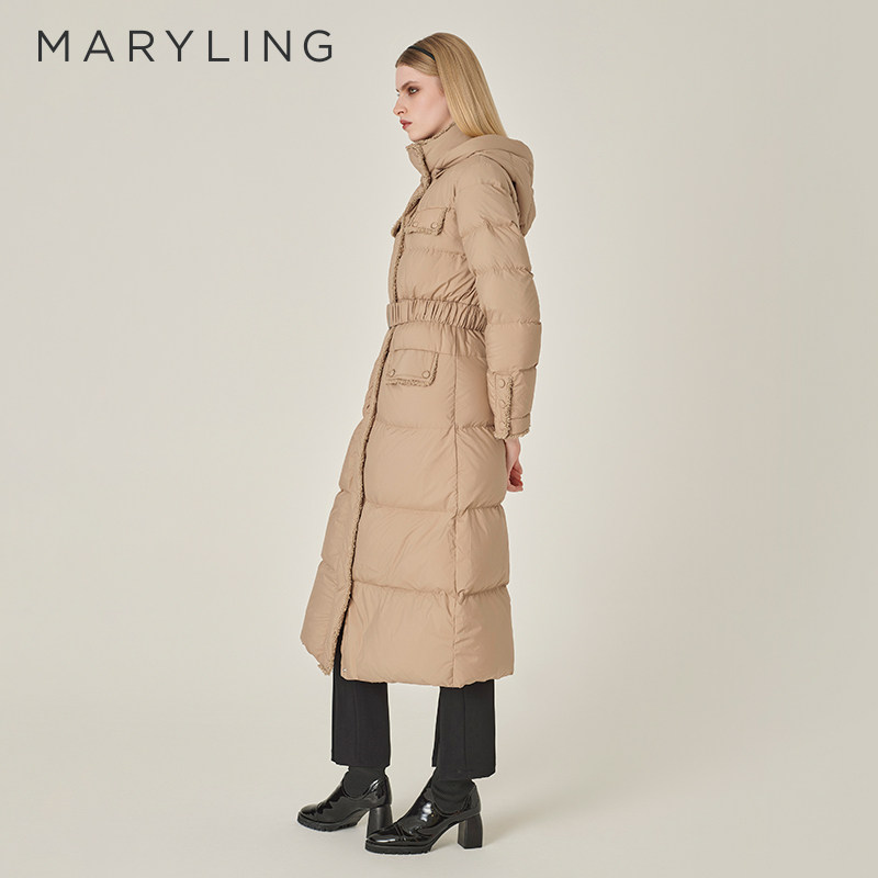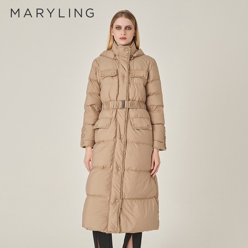 连帽羽绒服A1EHW98170 驼色长款 MARYLING玛俪琳冬季 新品