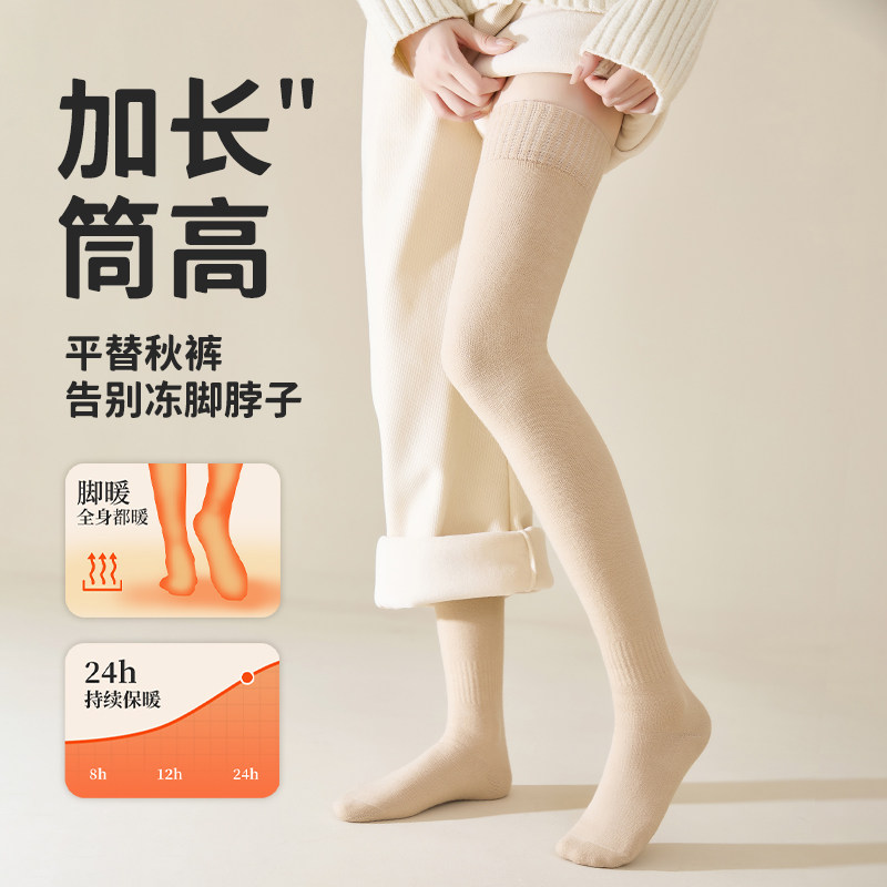 袜子女长筒袜秋冬季 小腿袜加绒加厚纯棉大腿过膝袜冬天保暖中筒袜