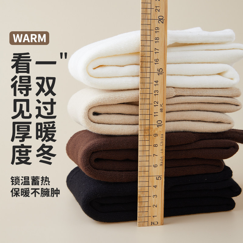 袜子女秋冬季 含羊毛棉袜保暖毛圈长筒袜 加绒加厚中筒雪地袜子女款