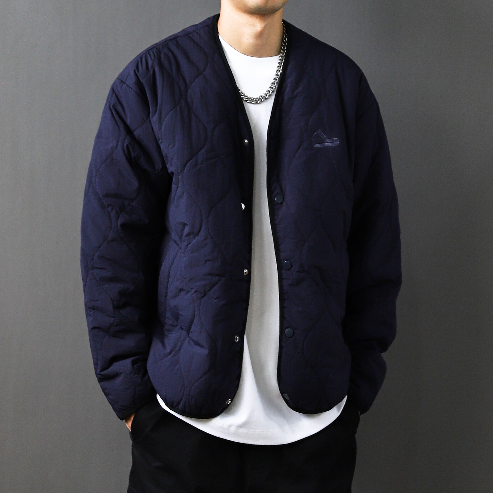百搭2025棉服棉衣外套轻薄宽松 男款 日系复古菱形格大码 V领秋冬季