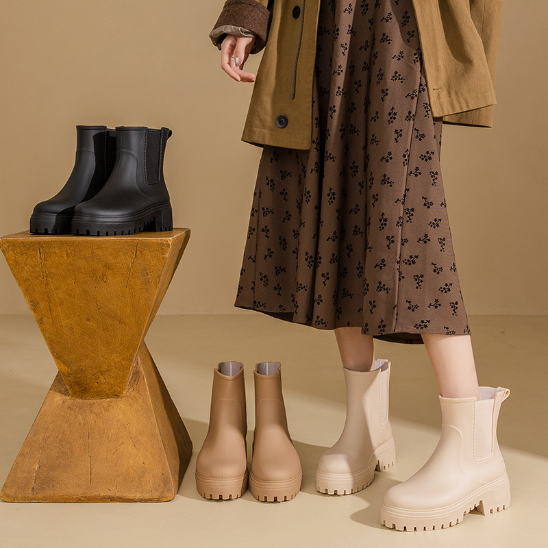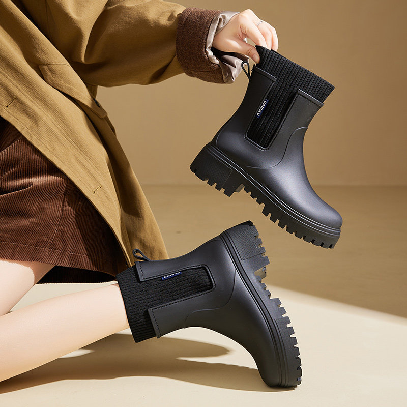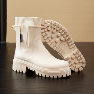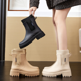 女款 防滑舒适雨靴加绒胶鞋 2025新款 中筒防水鞋 涉水靴时尚 马丁雨鞋