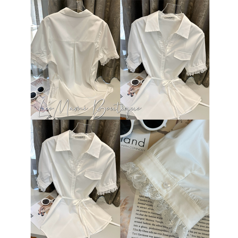 气质百搭绑带收腰显瘦上衣ins 蕾丝拼接V领衬衫 LeoMami孕妇装 夏款