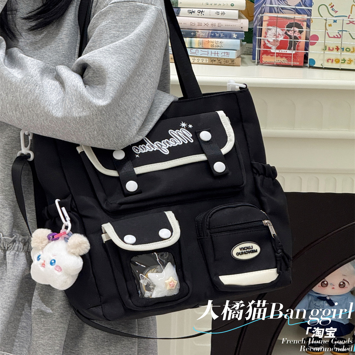 百搭少女斜挎包多隔层手提袋女高中初中学生上课书包大容量单肩包