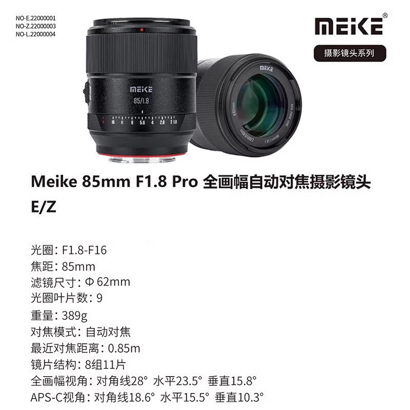 MEKE美科85mm F1.8PRO全画幅自动对焦镜头适用索尼FE尼康Z富士X