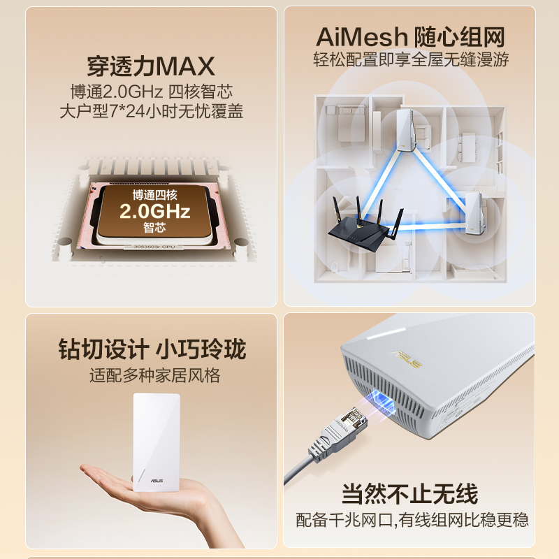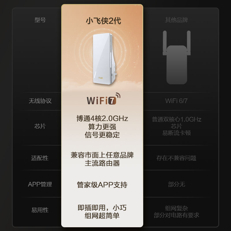 BE58 华硕小飞侠wifi7组网超人无线信号放大器wifi增强器大户型中继器即插即用高速千兆网口RP 全新升级