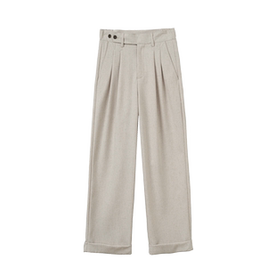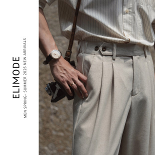 透气休闲双褶直筒西裤 Eli 薄款 老钱风法国雨露麻混纺夏季 白沙
